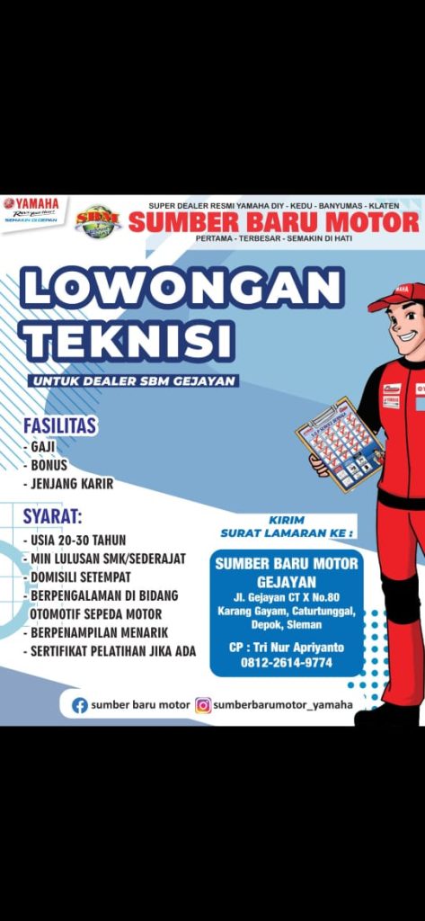 Info Lowongan Pekerjaan #327, dari Yamaha Sumber Baru Motor