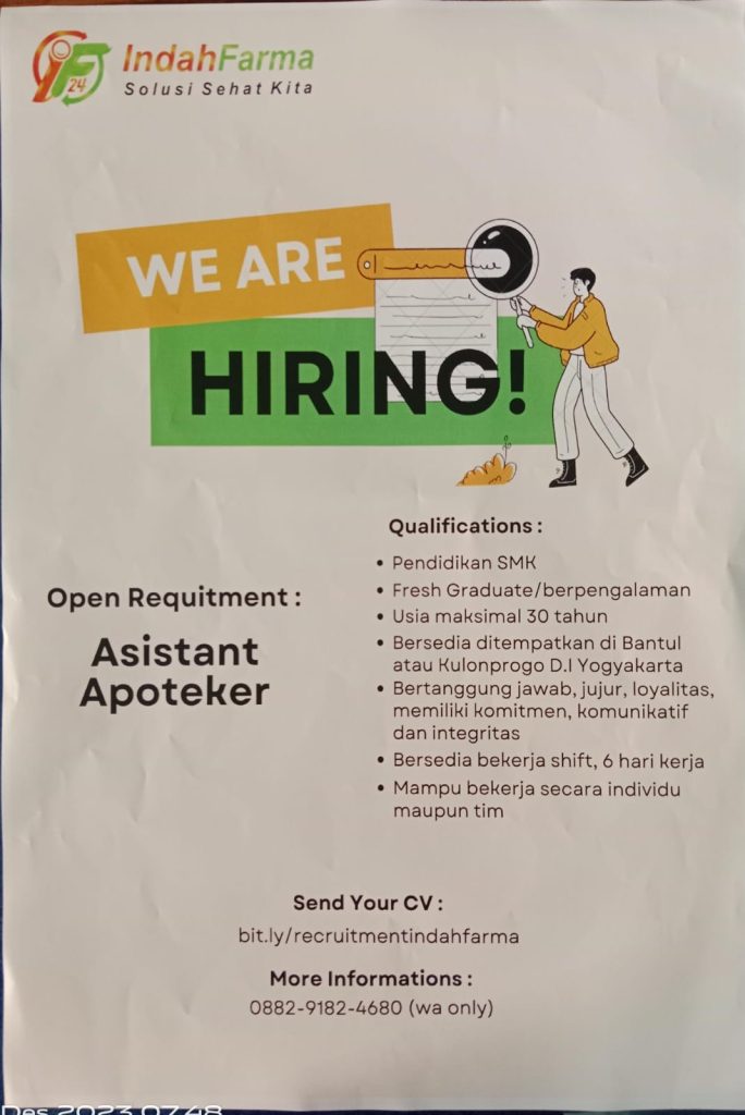 Info lowongan pekerjaan diatas tidak kolektif sekolah, silahkan yang berminat bisa mengikuti prosedur pendaftaran di pusat informasi yg tertera di leaflet, Silahkan secepatnya manfaatkan kesempatan ini. SMK BISA-HEBAT!!!