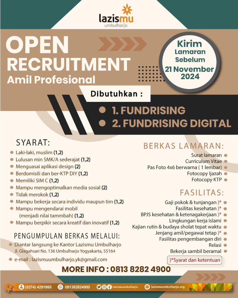 Info Lowongan Pekerjaan #485, dari Lazismu Umbulharjo