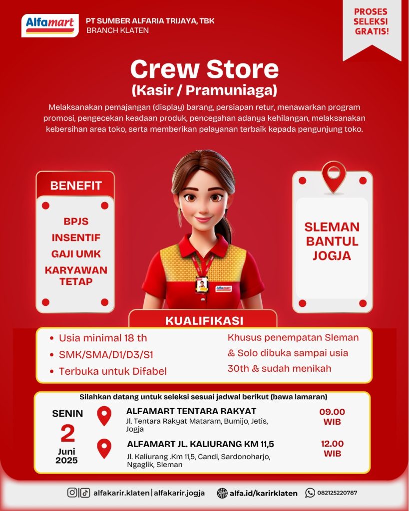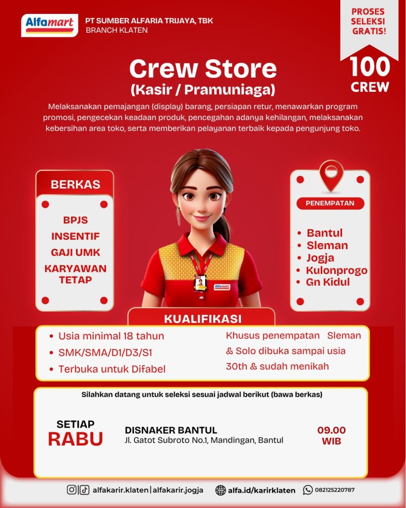 Info Lowongan Alfamart tidak kolektif sekolah, silahkan yang berminat dan memenuhi kriteria untuk segera mendaftar dan sesuai jadwal. Silahkan secepatnya manfaatkan kesempatan ini. SMK BISA-HEBAT!!!