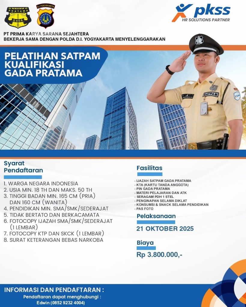 Berita #61, Program Pelatihan Satpam PKSS X Polda DIY Oktober 16, 2025Oktober 16, 2025 admin0 commentsBeritaPengumuman