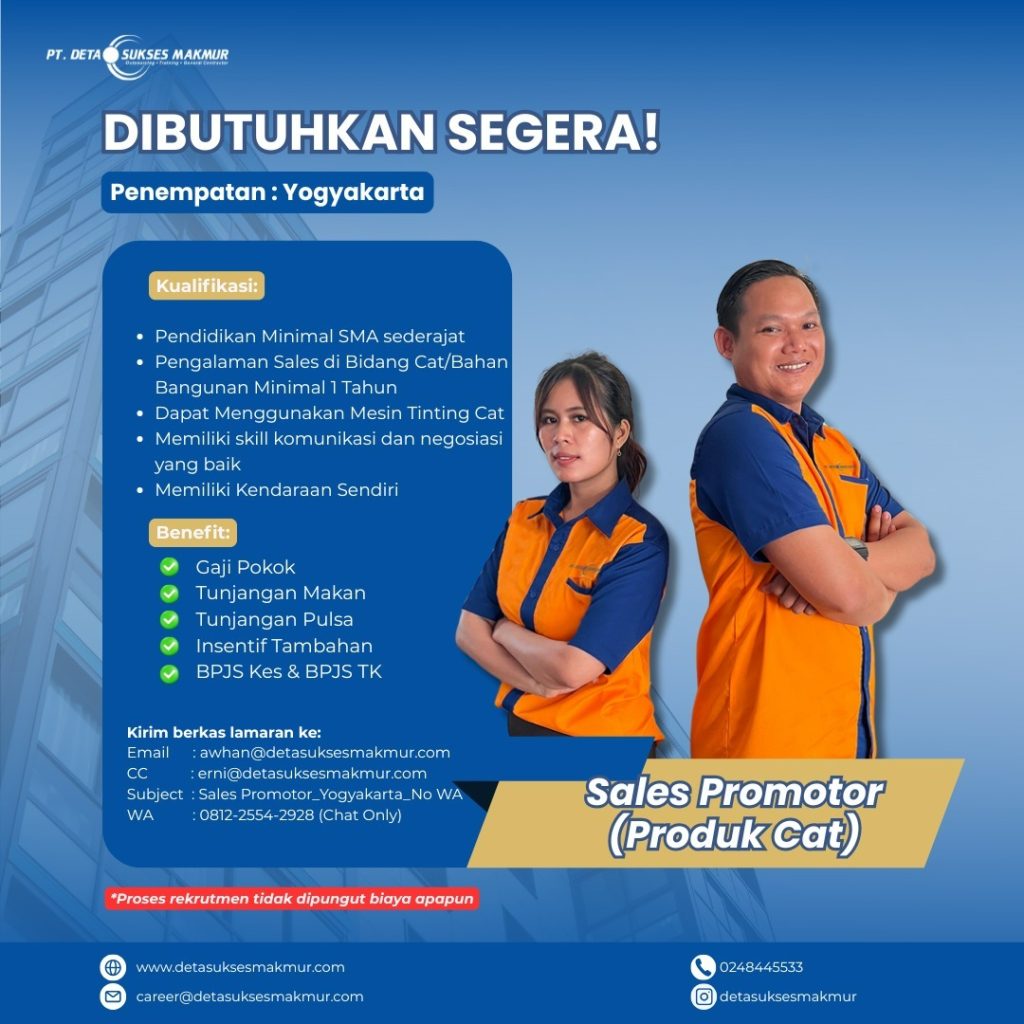 Info lowongan pekerjaan dari PT. DETA SUKSES MAKMUR tidak kolektif sekolah, silahkan yang memenuhi kriteria untuk segera mendaftar. Yang berminat silahkan hubungi admin untuk kami laporkan ke HRD. Silahkan secepatnya manfaatkan kesempatan ini. SMK BISA-HEBAT!!!